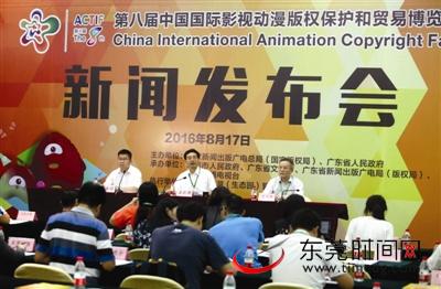 第八届漫博会执委会副主任委员、东莞市委常委、宣传部部长潘新潮,第八届漫博会执委会副秘书长、广东省新闻出版广电局(版权局)版权管理处处长张同英出席新闻发布会并向媒体介绍有关情况。第八届漫博会执委会副秘书长、东莞市政府副秘书长张春扬主持发布会。